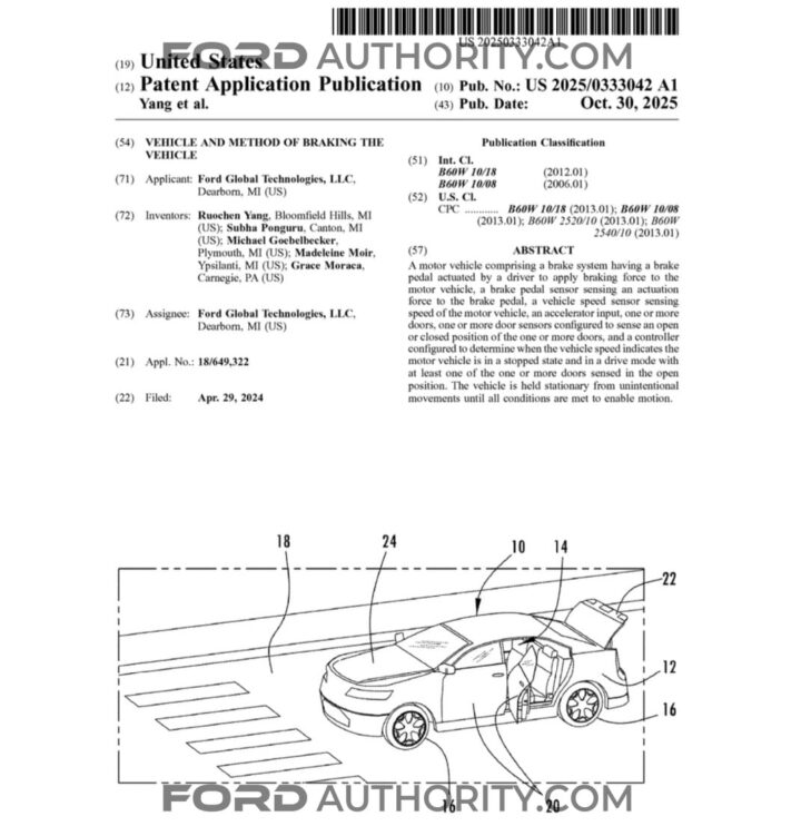 Ford continues to explore new safety-focused technologies, and its latest patent filing highlights a potential solution aimed at preventing vehicle rollaway incidents. The automaker has filed a patent for a braking method that could be used in future Ford vehicles, designed to automatically apply the brakes if a vehicle begins to move while a door or trunk is open.