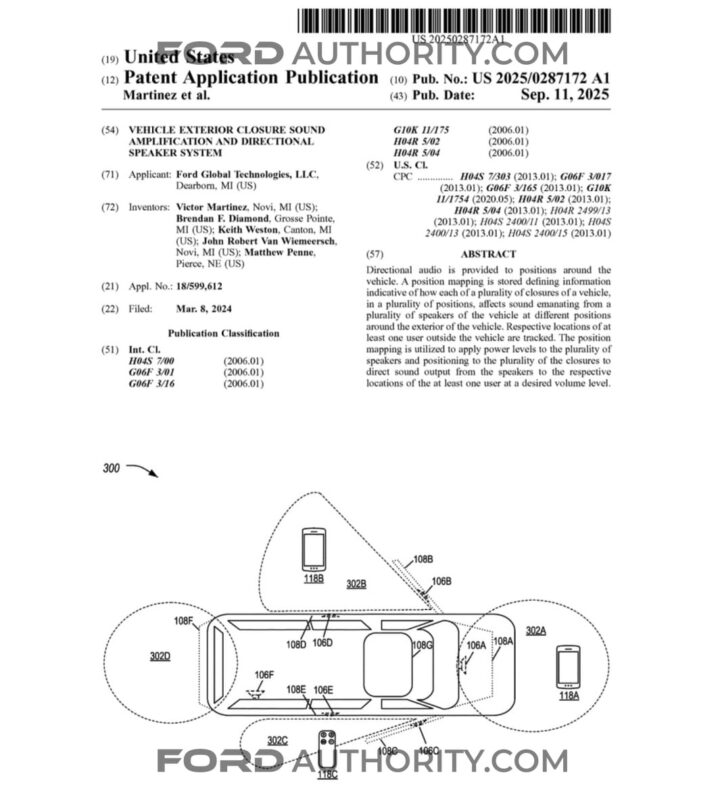 Ford is exploring new ways to make its vehicles more versatile, even when parked. A newly published patent outlines a directional speaker system that could automatically detect where people are standing outside the vehicle and adjust the direction and volume of sound accordingly.