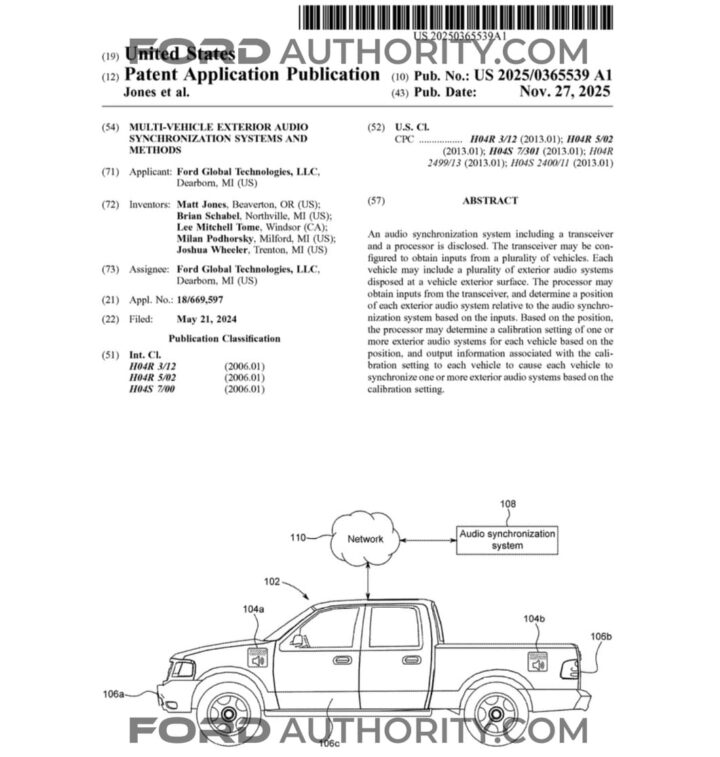 Ford Motor Company continues to explore creative ways to enhance how drivers and passengers experience audio beyond the cabin. A newly published patent outlines a multi-vehicle exterior synchronization system that could allow multiple Ford vehicles to play audio together in a coordinated and immersive way.