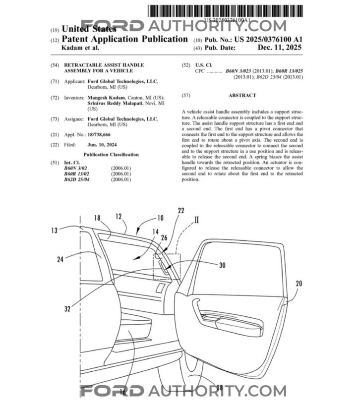 Ford Motor Company continues to explore thoughtful ways to improve vehicle accessibility without compromising interior design. A newly published patent outlines a concept for retractable assist handles that could appear only when needed, then tuck neatly away when not in use.