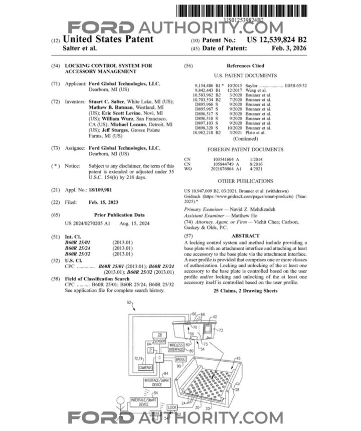 Pickup trucks are often used to haul valuable gear, from work equipment to recreational accessories. Ford has already filed patents outlining various accessory attachment systems and modular base plates, giving owners flexible mounting points for cargo. This latest idea builds on those concepts by adding an integrated locking mechanism to help secure those items more effectively.