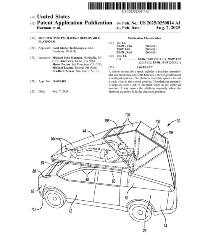 Ford is once again exploring innovative ideas for adventure-ready vehicles, this time with a patent for a bed-mounted deployable shelter system that could make future Ford pickups even more versatile. Filed on February 7, 2024, and published on August 7, 2025, this new concept is designed to transform the truck bed into a convenient camping solution.