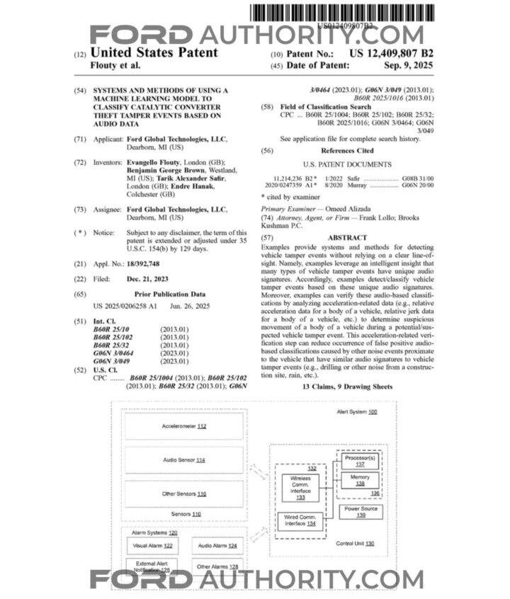 Ford is exploring an innovative way to protect drivers from one of the most common vehicle crimes: catalytic converter theft. A recently published patent details a new audio-based detection system that could identify theft attempts by recognizing the unique sounds associated with tampering.
