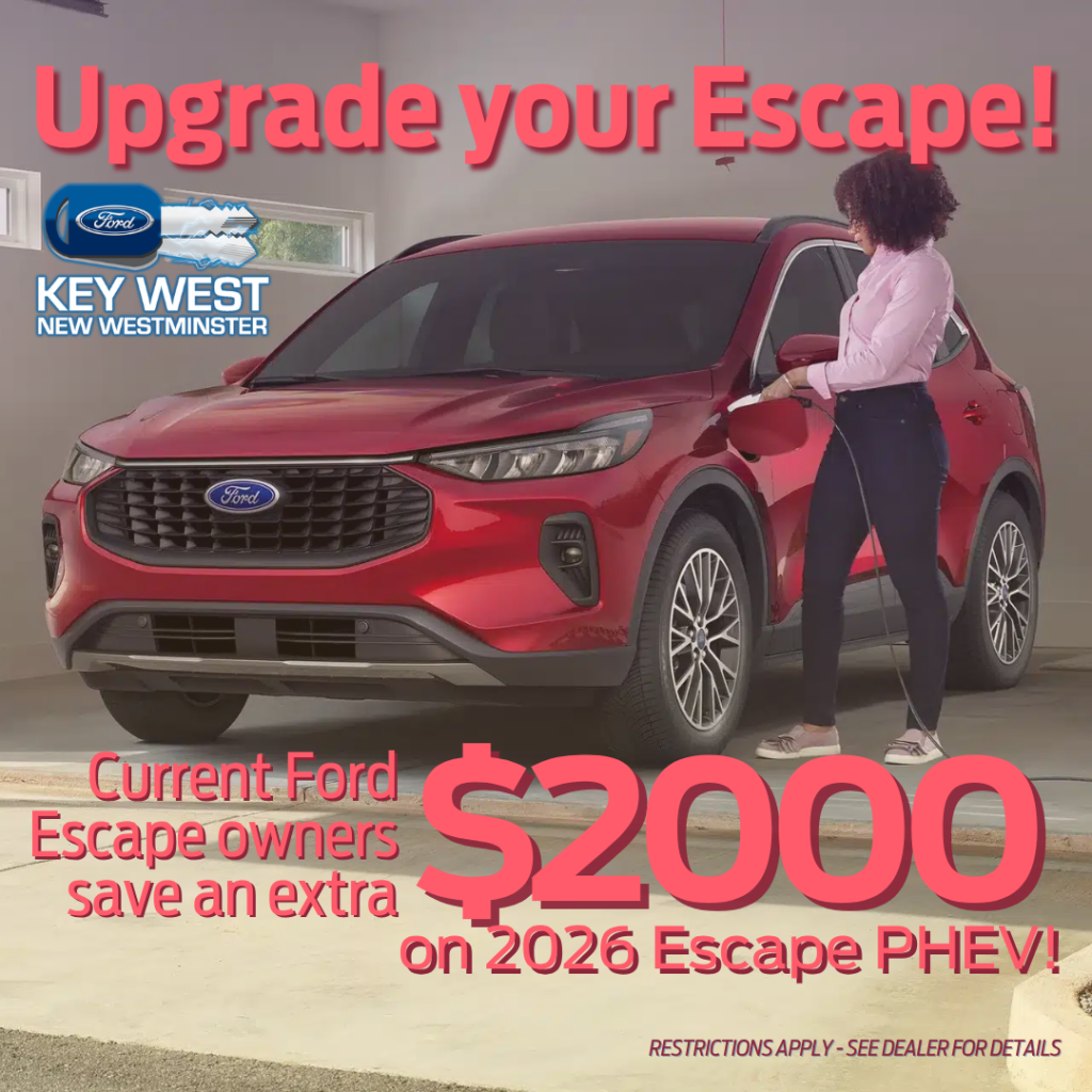 👉 This offer is available to current Escape owners and lessees (2015–2025 models) who trade in or terminate their lease and move into an eligible new Ford vehicle.