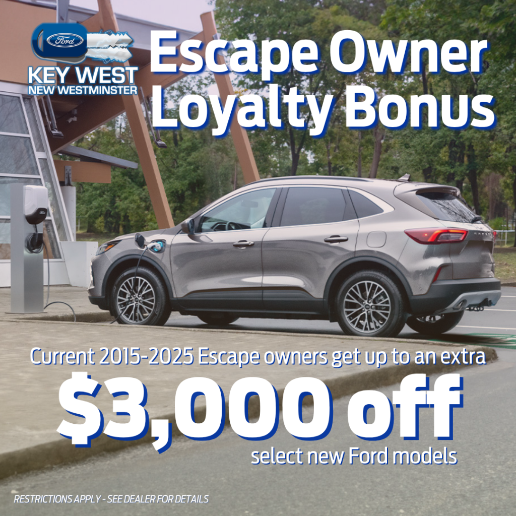 From now through June 30, 2026, eligible Escape owners and lessees can receive up to $3,000 in loyalty savings when trading in their Escape or ending their lease and purchasing, leasing, or factory-ordering an eligible new Ford vehicle.